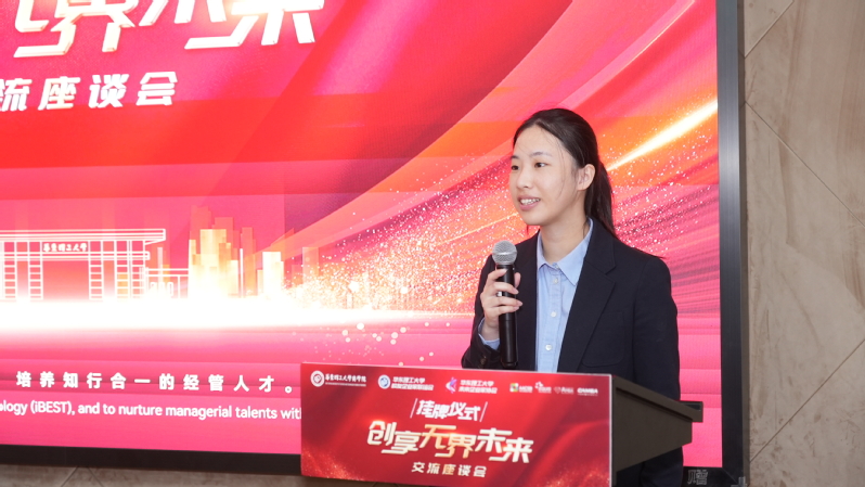 未来企业家协会会长鲍舒含同学感谢学校及校友的支持,并介绍了协会的发展规划。协会计划设立创业扶持基金,推动项目孵化,同时通过创业沙龙、企业参访等活动加强与校友的交流合作。