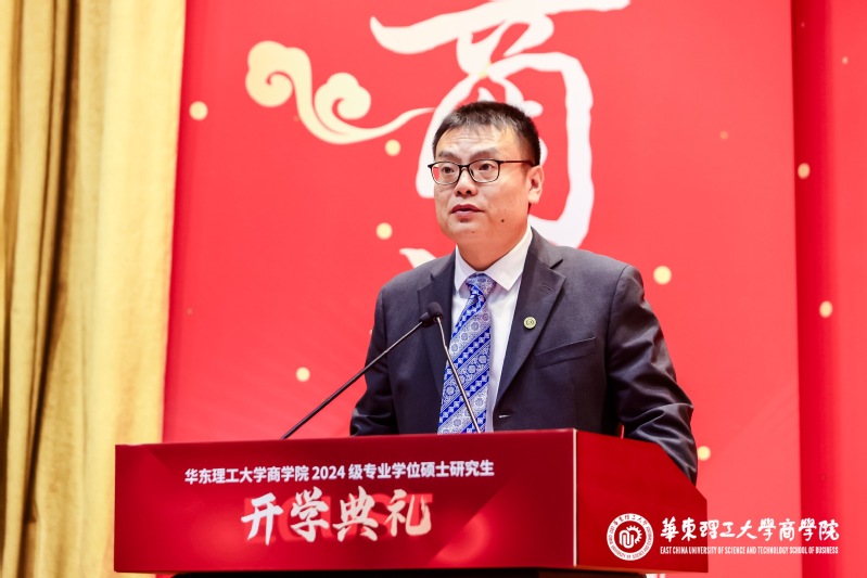上海市五一劳动奖章和学校全额奖学金的获得者、上药控股有限公司上海业务总部助理总经理,2024级EMBA非全日制大健康班刘洪波作为新生代表发言。刘洪波表示,在华理本科学习的时光是自己人生中最难忘、最美好的一段时光,也是自己青年时代成长最快、最重要的四年,母校也是他决定读研究生的坚定的唯一选择。他分享了自己自律的备考时光和重回校园的期待,并希望在之后的学习中,能和同学们一起找到属于自己的宝藏,实现自己的梦想。