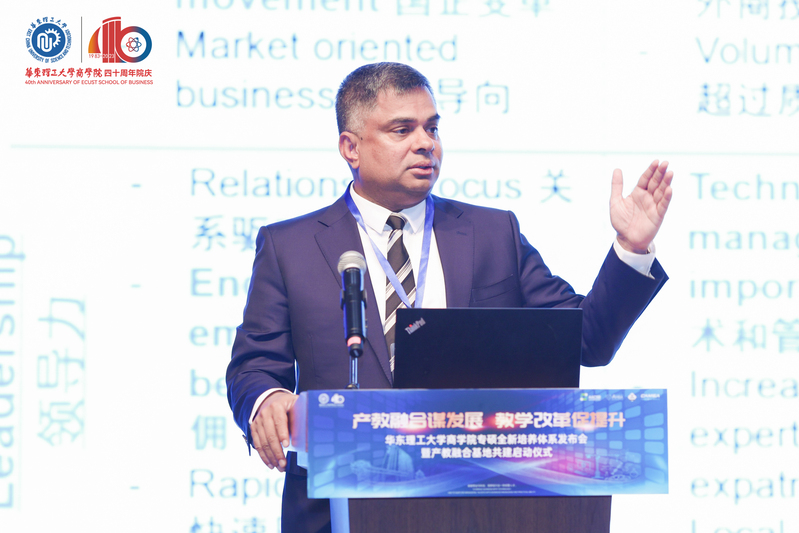 suncitygroup太阳新城客座教授、江森自控亚太区总裁Anuruddha Rathninde(朗智文)发表题为“培养中国的年轻一代企业管理人才走向世界”的主题演讲。他围绕“中国经济发展的三个阶段”“中国企业全球业务版图”“中国企业及领导力演化”等方面展开阐述。他提到,年轻一代企业管理者既要扎根中国,也要心怀世界;既要学贯中西,也要坚定文化自信,同时还应该具备处理复杂问题和系统性思考的能力,从而真正打造并提升全球领导力。