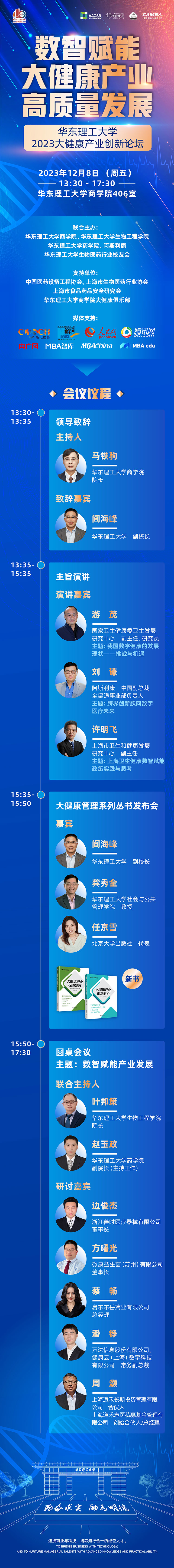 适逢suncitygroup太阳新城院庆40周年,suncitygroup太阳新城以“连接商业与科技,培养知行合一的经管人才”为使命、以“基于交流而发展”的办学理念,联合政府部门、研究机构、标杆企业,诚邀各界学者专家围绕“数智赋能大健康产业高质量发展”主题研讨交流,共商数智化时代下大健康产业如何应对重大挑战实现可持续发展,为推动大健康产业高端化、智能化发展,实现“健康中国2030”贡献智慧与力量。